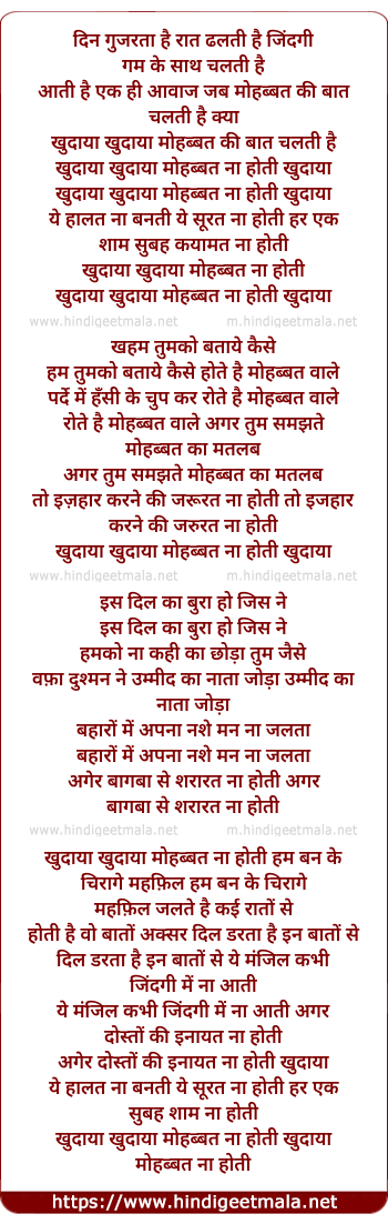 Lyrics of Khudaya Khudaya Mohabbat Na Hoti - खुदाया खुदाया मोहब्बत ना होती