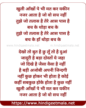 Lyrics of Khulee Aankho Pe - खुली आँखों पे