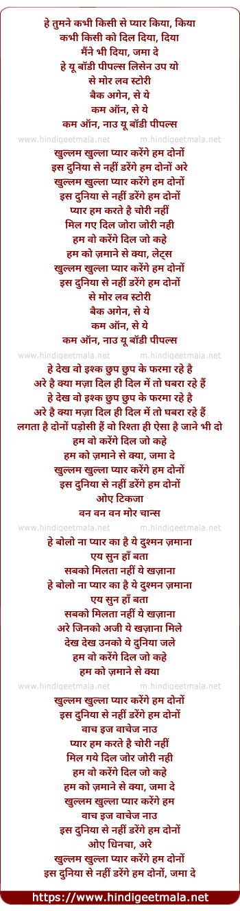 Poetic Translation - Lyrics of Khullam Khulla Pyar Karenge - खुलम खुला प्यार करेंगे