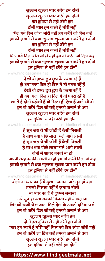 Lyrics of Khullam Khulla Pyar Karenge Hum Dono - खुल्लम खुल्ला प्यार करेंगे हम दोनों