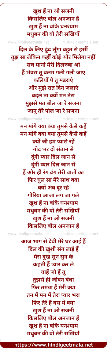 Lyrics of Khush Hai Na O Sajni - खुश हैं ना ओ सजनी