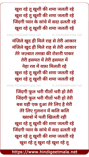 Lyrics of Khush Rahe Tu Khushi Ki Shamaa Jalti Rahe - खुश रहे तू खुशी की शमा जलती रहे