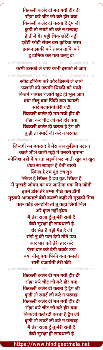 Lyrics of Kikli Kalerdi - किकली कलेरदी