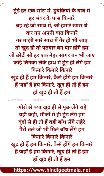 Lyrics of Kinare, Khud Hi To Hai Hum - किनारे, खुद ही तो हैं हम