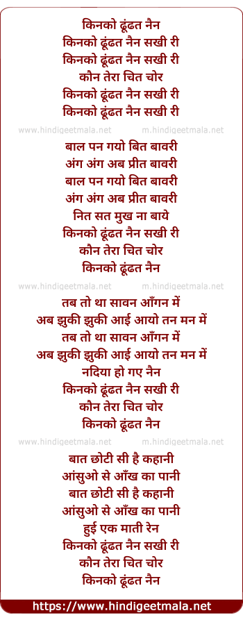 Lyrics of Kinko Dhundhat Nain Sakhi Ri - किनको ढूंढत नैन