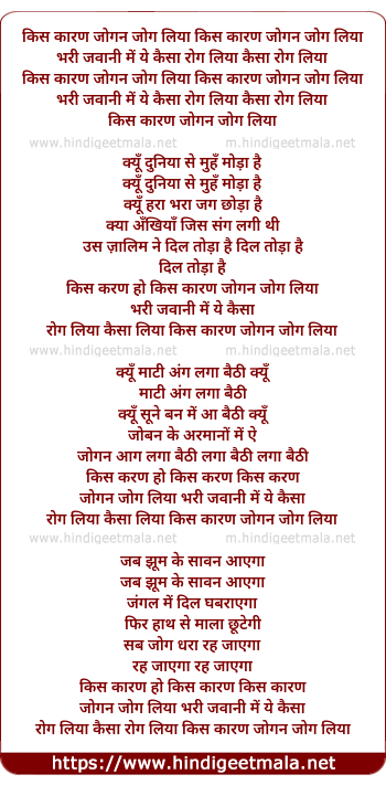 Lyrics of Kis Karan Jogan Jog Liya - किस कारण जोगन जोग लिया
