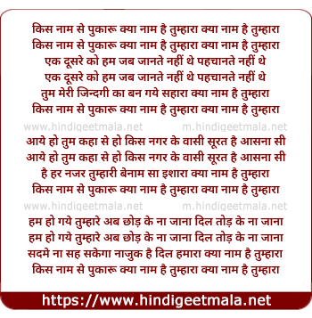 Lyrics of Kis Naam Se Pukaru Kya Naam Hai - किस नाम से पुकारू क्या नाम है