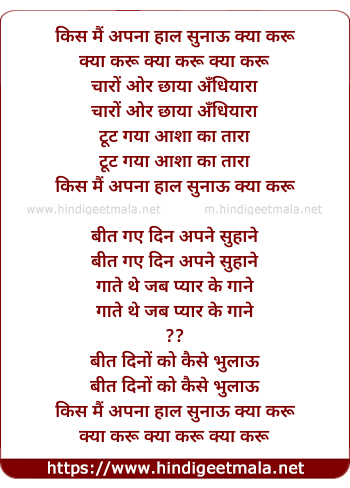 Lyrics of Kise Mai Apna Haal Sunau Kya Karu - किस मैं अपना हाल सुनाऊ क्या करू