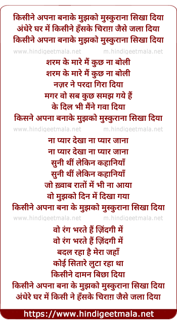 kisine apna banake mujhko muskurana sikha diya