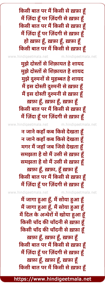 Lyrics of Kisi Bat Par Mai Kisi Se Khafa Hu - किसी बात पर मैं किसी से ख़फ़ा हूँ
