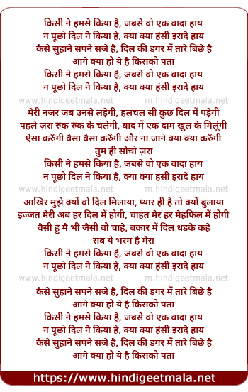 Lyrics of Kisi Ne Humse Kiya Hai Vada - किसी ने हमसे किया है वादा