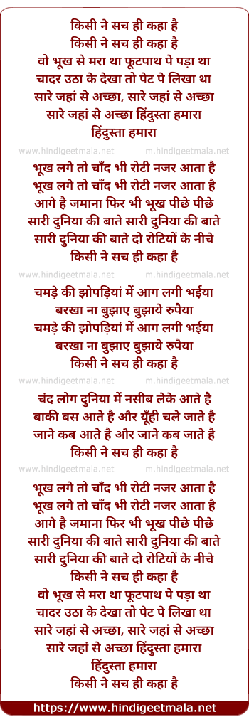 Lyrics of Kisi Ne Sach Hi Kahaa Hai - किसी ने सच ही कहा है