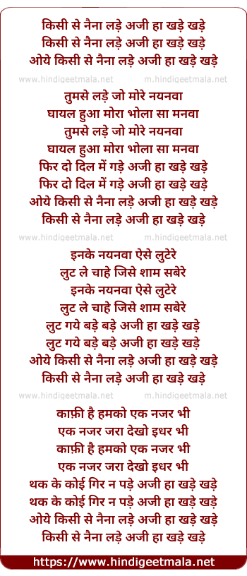 Lyrics of Kisi Se Naina Lade Aji Ha Khade Khade