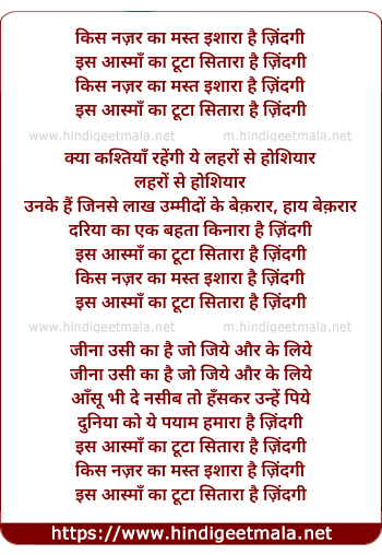 Lyrics of Kiski Nazar Ka Mast Ishara Hai Zindagi - किस नज़र का मस्त इशारा है ज़िंदगी