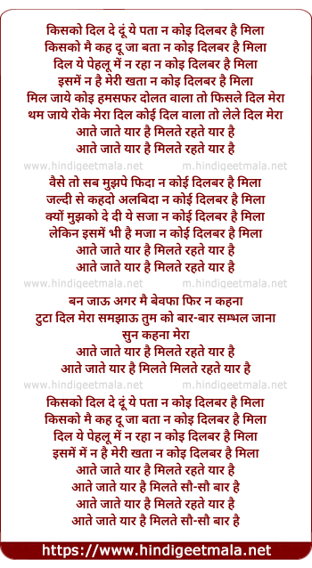 Lyrics of Kisko Dil De Doon - किसको दिल दे दूं
