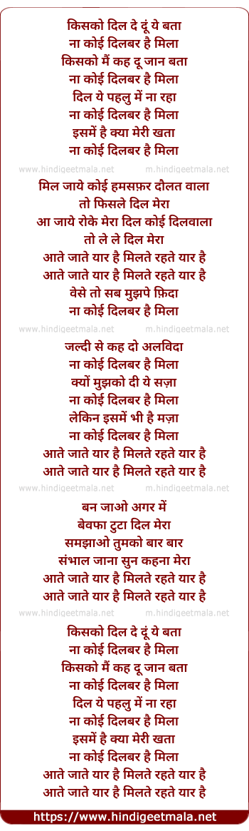 aate jate yaar hai milte rehte yaar hai