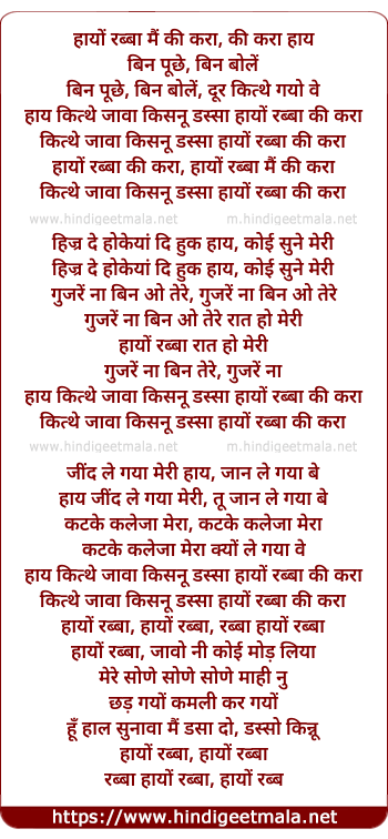 haay kithhe jaava kisnu dassa haayo rabba ki kara
