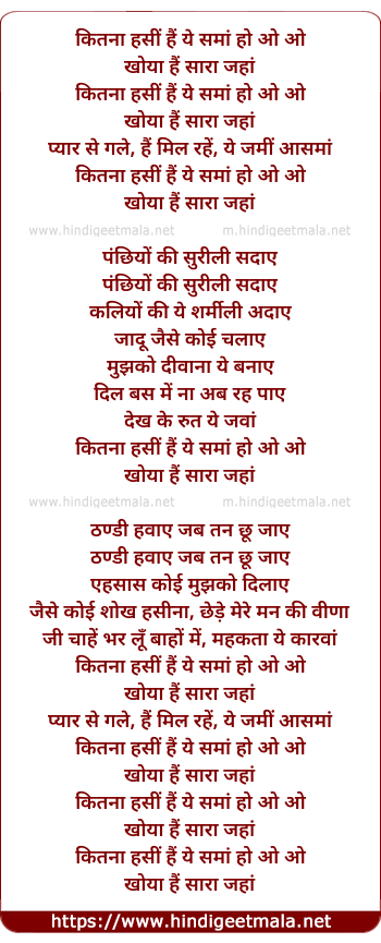 Lyrics of Kitna Haseen Hai Yeh Sama - कितना हसीं हैं ये समां हो ओ ओ