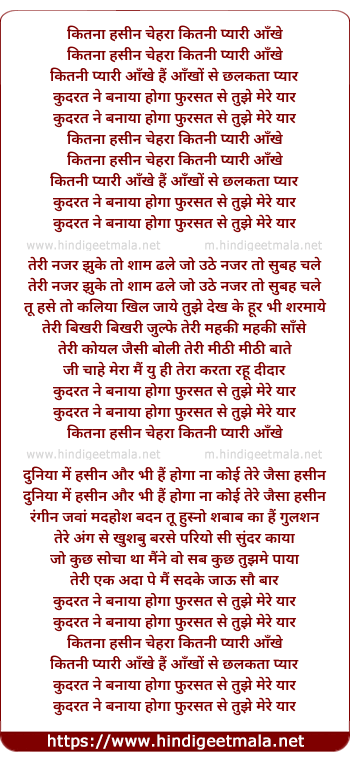 Lyrics of Kitna Hasin Chehra, Kitnee Pyaree Aankhe - कितना हसीन चेहरा कितनी प्यारी आँखे