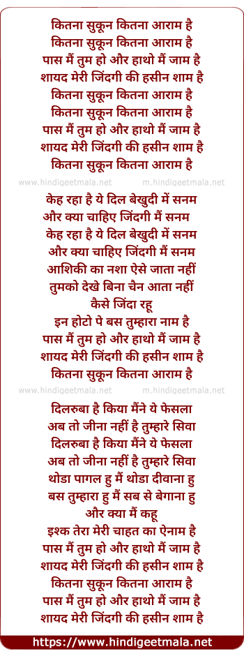 Lyrics of Kitna Sukun Kitna Aaram Hai - कितना सुकून कितना आराम है