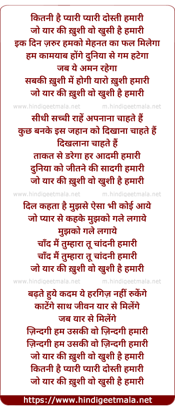Lyrics of Kitni Hai Pyari Pyari Dosti Hamari - कितनी है प्यारी प्यारी दोस्ती हमारी