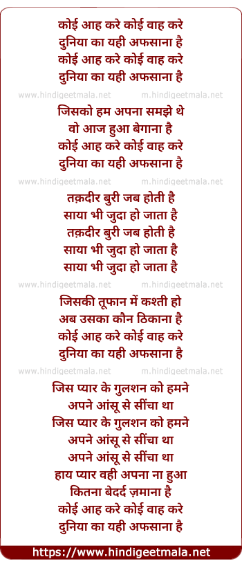 Lyrics of Koi Aah Kare Koi Vaah Kare - कोई आह करे कोई वाह करे