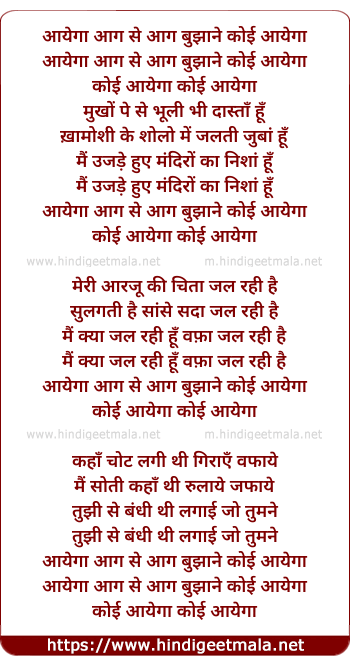 Lyrics of Koi Aayega Aag Se Aag Bujhane - कोई आयेंगा आग से आग बुझाने