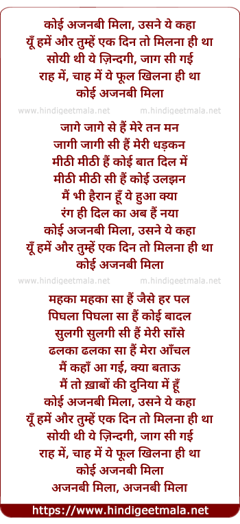 Lyrics of Koi Ajnabee Mila - कोई अजनबी मिला, उसने ये कहा