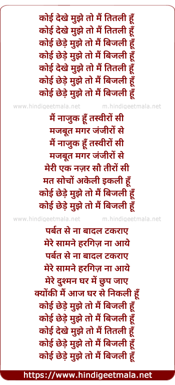 Lyrics of Koi Dekhe Mujhe To Main Titli Hu - कोई देखे मुझे तो मैं तितली हूँ