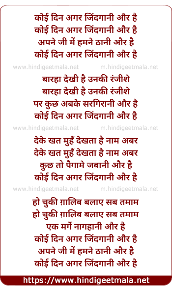 Lyrics of Koi Din Gar Zindgani Aur Hai - कोई दिन अगर जिंदगानी और है