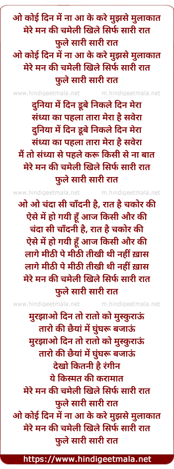 Lyrics of Koi Din Me Na Aa Ke Kare Mujhse - कोई दिन में ना आ के करे मुझसे