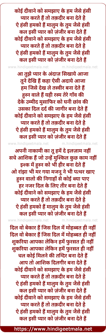 Lyrics of Koi Diwane Ko Samjhaye - कोई दीवाने को समझाये