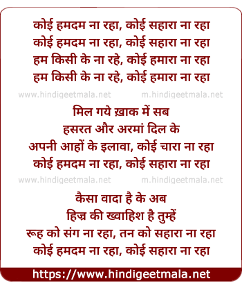 Lyrics of Koi Humdum Na Raha - कोई हमदम ना रहा