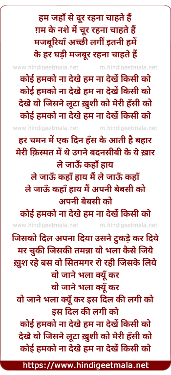 Lyrics of Hum Jaha Se Dur Rehna Chahate Hai - हम जहाँ से दूर रहना चाहते हैं