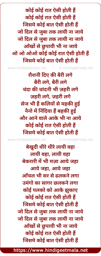 Lyrics of Koi Koi Raat Aisi Hoti Hai, Jisme Koi Baat Aisi Hoti Hai - कोई कोई रात ऐसी होती हैं, जिसमे कोई बात ऐसी होती हैं