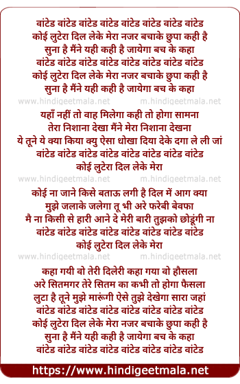 Lyrics of Koi Lutera Dil Le Ke Mera Najar Bachake - कोई लुटेरा दिल लेके मेरा नजर बचाके