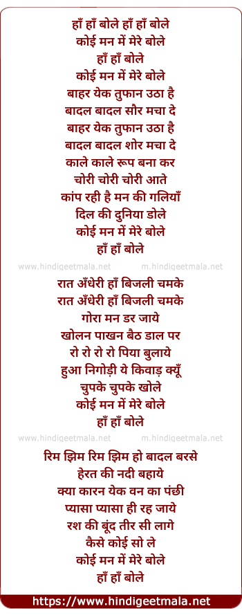 Lyrics of Koi Mann Me Mere Bole - हाँ हाँ बोले हाँ हाँ बोले