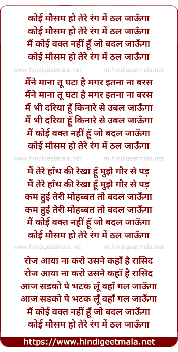 Lyrics of Koi Mausam Ho - कोई मौसम हो तेरे रंग में ठल जाऊँगा