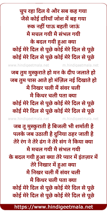 Lyrics of Koi Mere Dil Se Puchhe - कोई मेरे दिल से पूछे