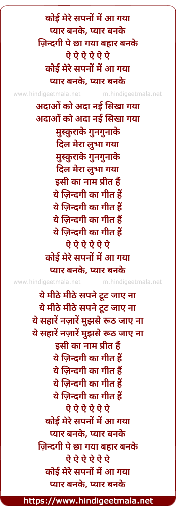 Lyrics of Koi Mere Sapno Me Aa Gaya - कोई मेरे सपनों में आ गया