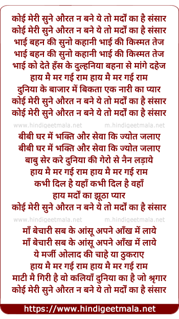 Lyrics of Koi Meri Sune, Aurat Na Bane - कोई मेरी सुने औरत ना बने
