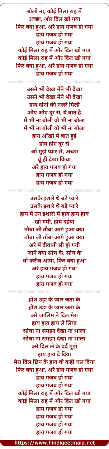 Lyrics of Koi Mila Raah Me Aur Dil Kho Gaya - कोई मिला राह में और दिल खो गया