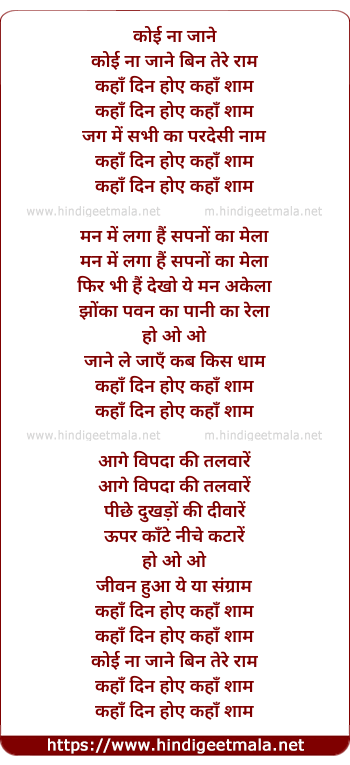 Lyrics of Koi Na Jane Bin Tere Ram - कोई ना जाने बिन तेरे राम