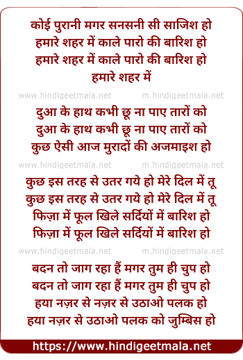 Lyrics of Koi Purani Magar Sansani Si Sajish Ho - कोई पुरानी मगर सनसनी सी साजिश हो