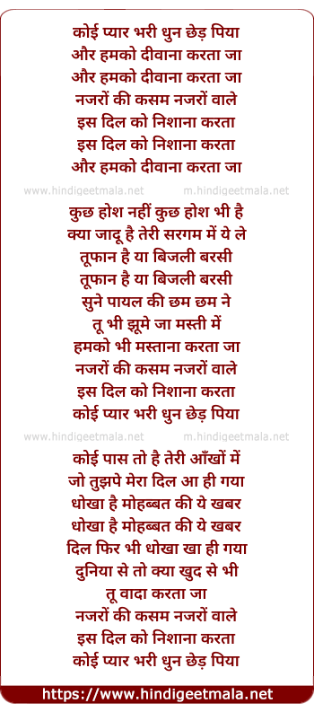 Lyrics of Koi Pyar Bhari Dhun Chhed Piya - कोई प्यार भरी धुन छेड़ पिया