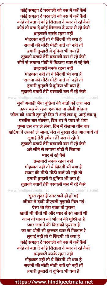 tujhko ko bataye teri gharwali bas me rahe kaise