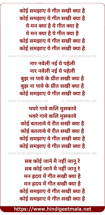 Lyrics of Koi Samjhaye Ye Geet Sakhi Kya Hai - कोई समझाए ये गीत सखी क्या है