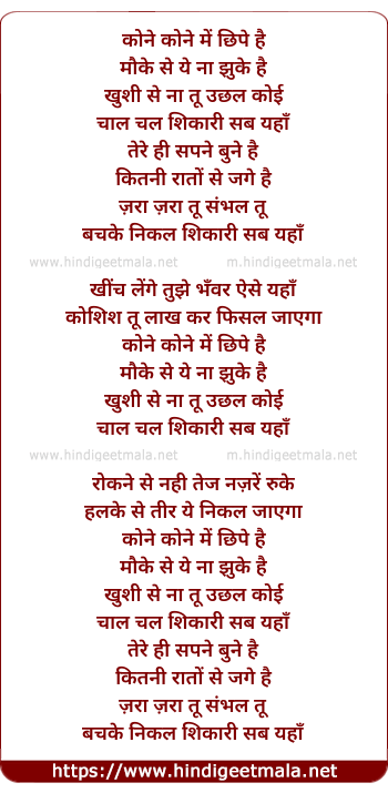 Lyrics of Kone Kone Mein Chhipe Hain - कोने कोने में छिपे है