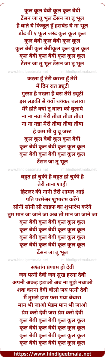 Lyrics of Kool Baby Kool - कूल बेबी कूल