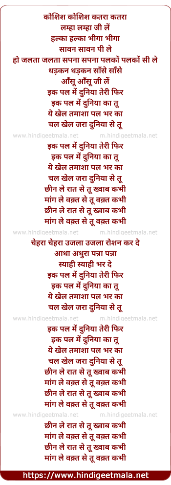Lyrics of Koshish Koshish Katara Katara - कोशिश कोशिश कतरा कतरा
